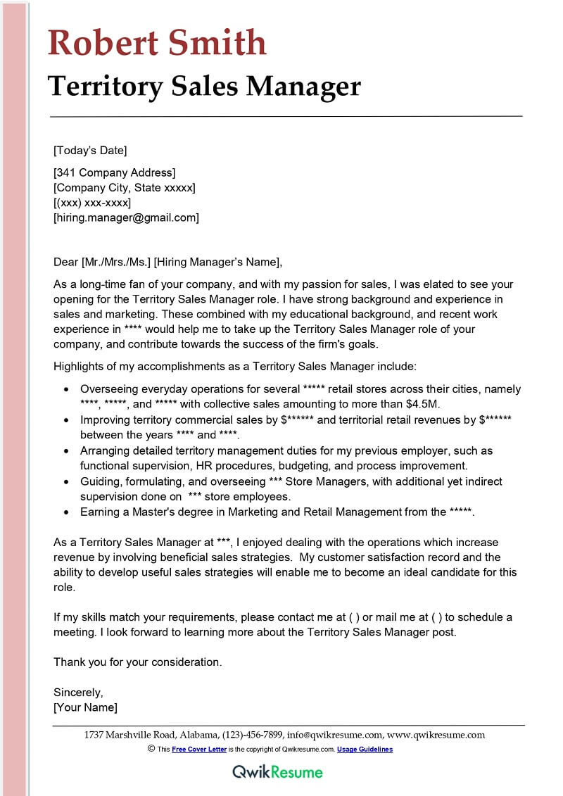 Sales Manager Resume Cover Letter Sample Territory Sales Manager Cover Letter Examples – Qwikresume and all other pictures, designs or photos on our website are copyright of their respective owners. we get our pictures from another websites, search engines and other sources to use as an inspiration for you. please contact us if you think we are infringing copyright of your pictures using contact page. we will be very happy to help you.