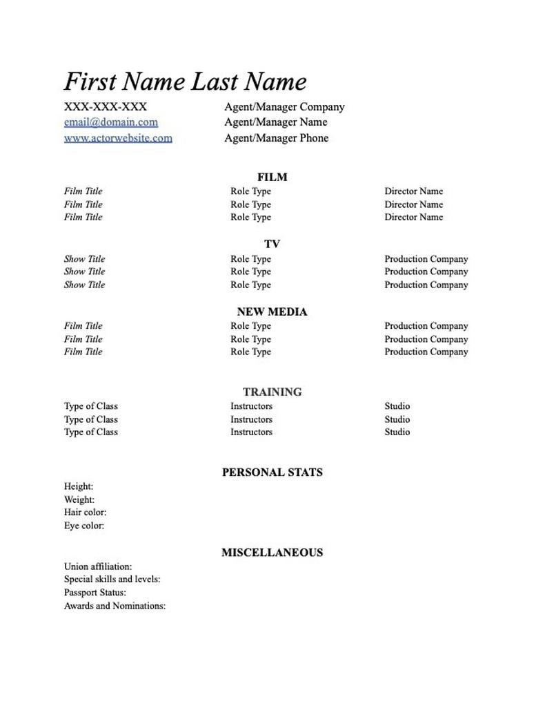Sample Acting Resume with Agency Listing Acting Résumé formatting Basics Template Backstage and all other pictures, designs or photos on our website are copyright of their respective owners. we get our pictures from another websites, search engines and other sources to use as an inspiration for you. please contact us if you think we are infringing copyright of your pictures using contact page. we will be very happy to help you.