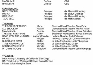 Back To Sample Acting Resume with Agency Listing
