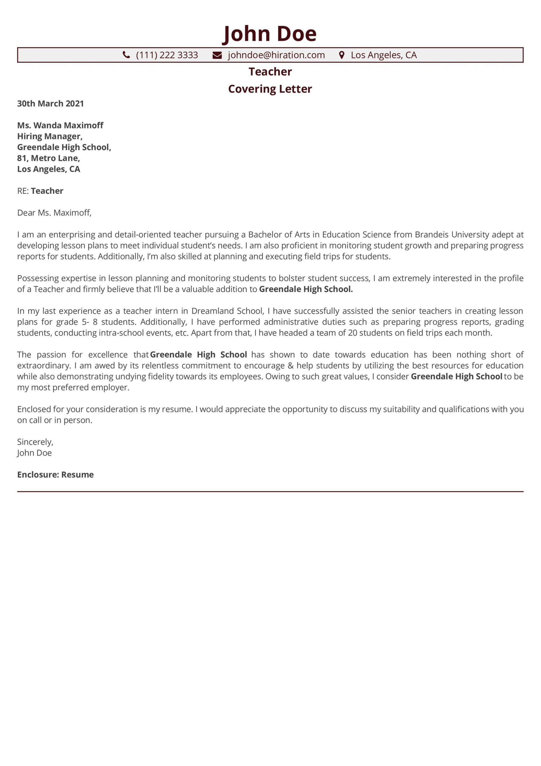 6 photos of the Sample Cover Letter and Resume for Teacher
