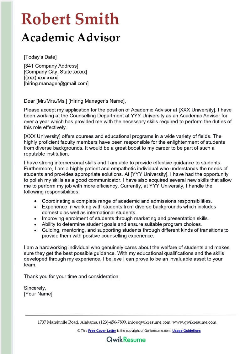 Sample Cover Letter for Academic Resume Academic Advisor Cover Letter Examples – Qwikresume and all other pictures, designs or photos on our website are copyright of their respective owners. we get our pictures from another websites, search engines and other sources to use as an inspiration for you. please contact us if you think we are infringing copyright of your pictures using contact page. we will be very happy to help you.