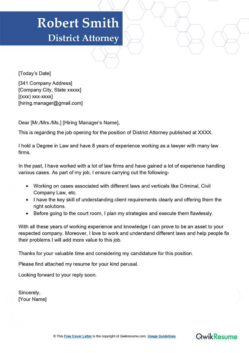 Sample Cover Letter for attorney Resume District attorney Cover Letter Examples – Qwikresume and all other pictures, designs or photos on our website are copyright of their respective owners. we get our pictures from another websites, search engines and other sources to use as an inspiration for you. please contact us if you think we are infringing copyright of your pictures using contact page. we will be very happy to help you.