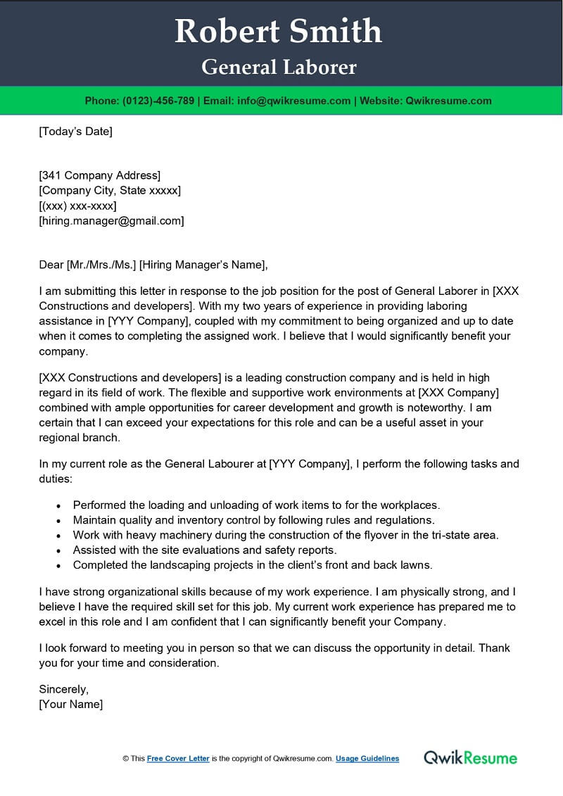 Sample Cover Letter for Labor Resume General Laborer Cover Letter Examples – Qwikresume and all other pictures, designs or photos on our website are copyright of their respective owners. we get our pictures from another websites, search engines and other sources to use as an inspiration for you. please contact us if you think we are infringing copyright of your pictures using contact page. we will be very happy to help you.