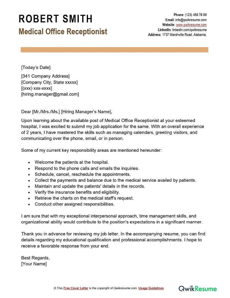 Sample Cover Letter for Medical Receptionist Resume Medical Office Receptionist Cover Letter Examples – Qwikresume and all other pictures, designs or photos on our website are copyright of their respective owners. we get our pictures from another websites, search engines and other sources to use as an inspiration for you. please contact us if you think we are infringing copyright of your pictures using contact page. we will be very happy to help you.