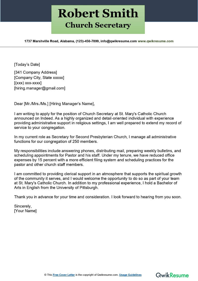 Sample Cover Letter for Ministry Resume Church Secretary Cover Letter Examples – Qwikresume and all other pictures, designs or photos on our website are copyright of their respective owners. we get our pictures from another websites, search engines and other sources to use as an inspiration for you. please contact us if you think we are infringing copyright of your pictures using contact page. we will be very happy to help you.