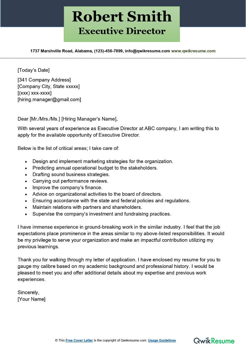Sample Cover Letter for Resume Executive Director Executive Director Cover Letter Examples – Qwikresume and all other pictures, designs or photos on our website are copyright of their respective owners. we get our pictures from another websites, search engines and other sources to use as an inspiration for you. please contact us if you think we are infringing copyright of your pictures using contact page. we will be very happy to help you.