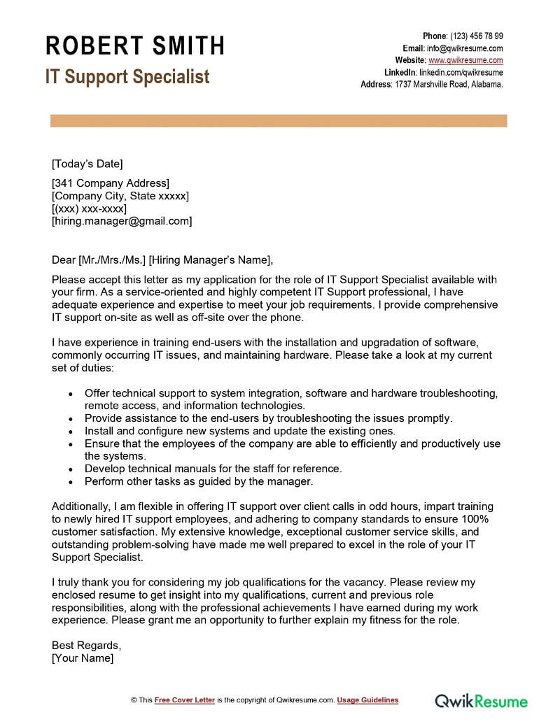 Sample Cover Letter for Resume for It Professional It Support Specialist Cover Letter Examples – Qwikresume and all other pictures, designs or photos on our website are copyright of their respective owners. we get our pictures from another websites, search engines and other sources to use as an inspiration for you. please contact us if you think we are infringing copyright of your pictures using contact page. we will be very happy to help you.