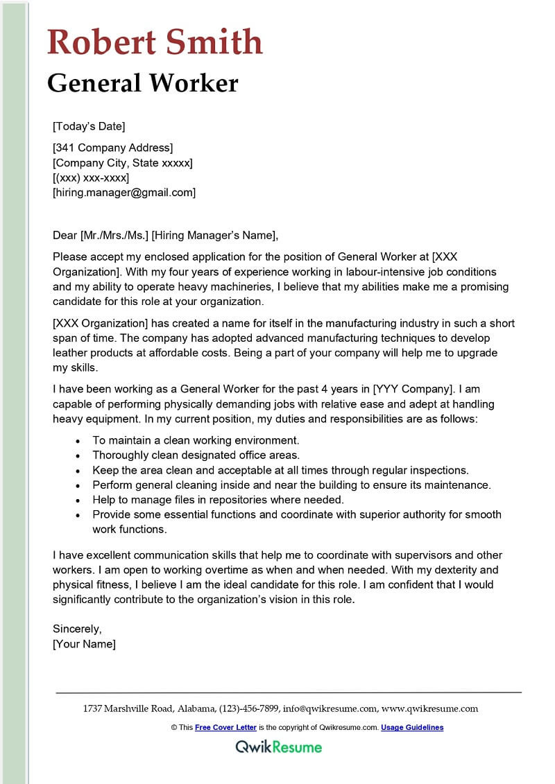 Sample Cover Letter for Resume General General Worker Cover Letter Examples – Qwikresume and all other pictures, designs or photos on our website are copyright of their respective owners. we get our pictures from another websites, search engines and other sources to use as an inspiration for you. please contact us if you think we are infringing copyright of your pictures using contact page. we will be very happy to help you.