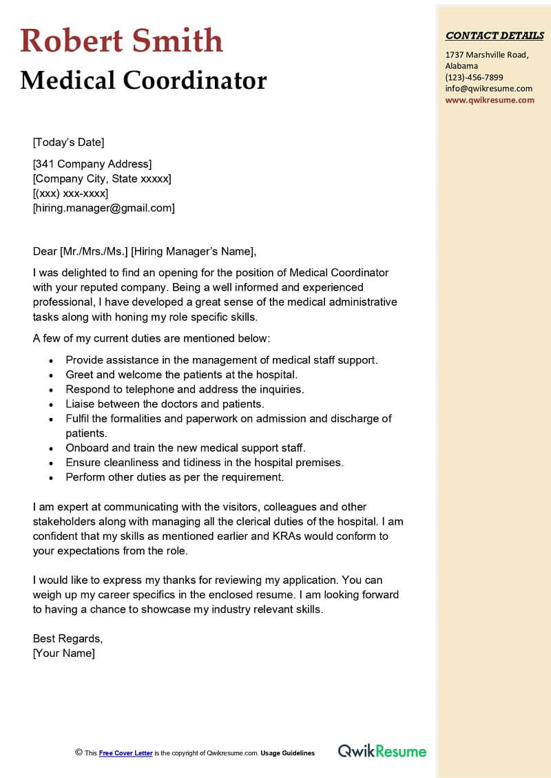 Sample Cover Letter for Resume In Medical Field Medical Coordinator Cover Letter Examples – Qwikresume and all other pictures, designs or photos on our website are copyright of their respective owners. we get our pictures from another websites, search engines and other sources to use as an inspiration for you. please contact us if you think we are infringing copyright of your pictures using contact page. we will be very happy to help you.