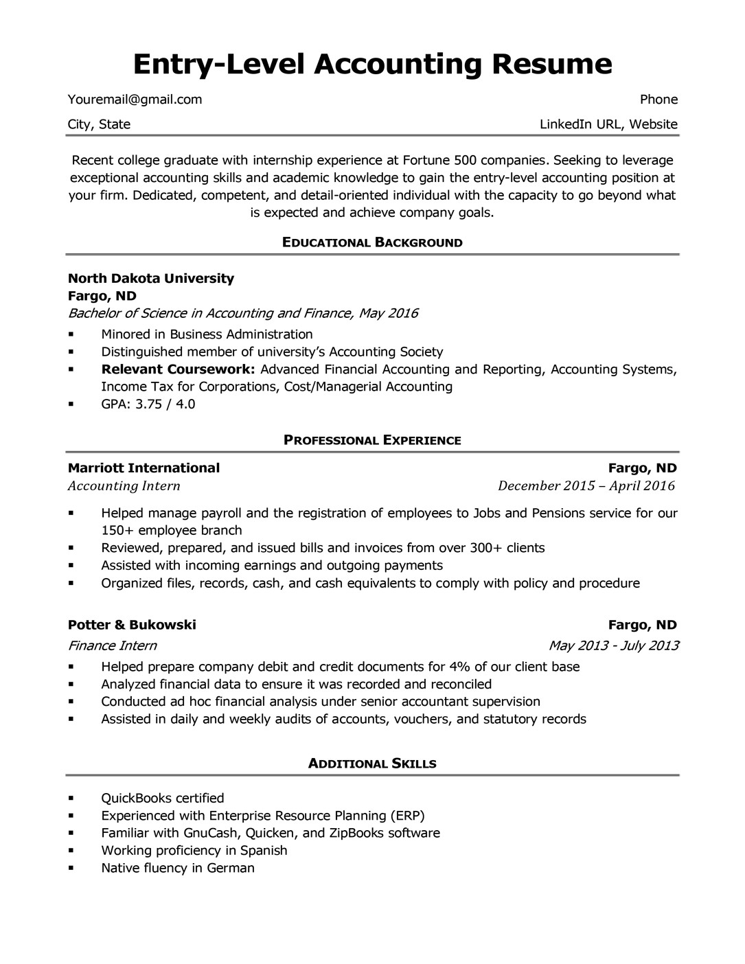 6 photos of the Sample Entry Level Accounting Resume No Experience