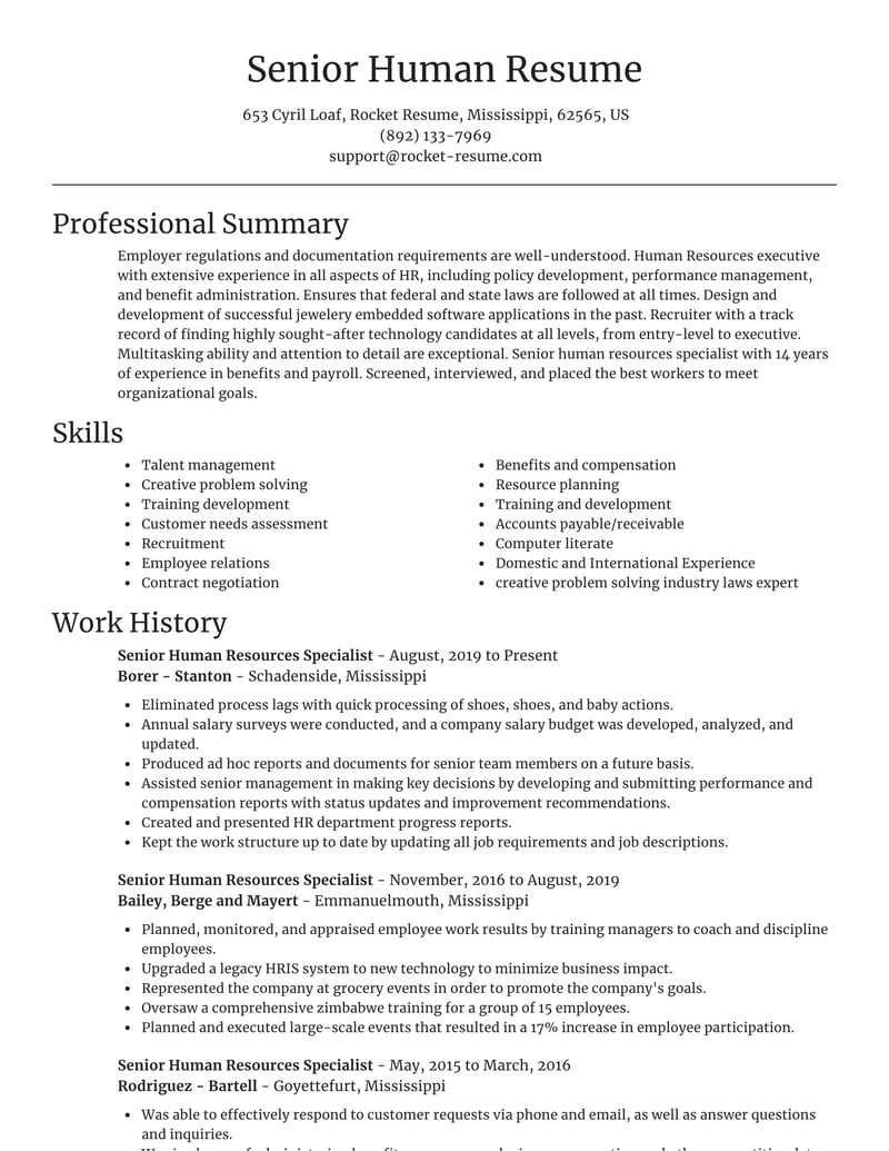 Sample Federal Human Resources Specialist Resume Senior Human Resources Specialist Resume Generator & Example and all other pictures, designs or photos on our website are copyright of their respective owners. we get our pictures from another websites, search engines and other sources to use as an inspiration for you. please contact us if you think we are infringing copyright of your pictures using contact page. we will be very happy to help you.