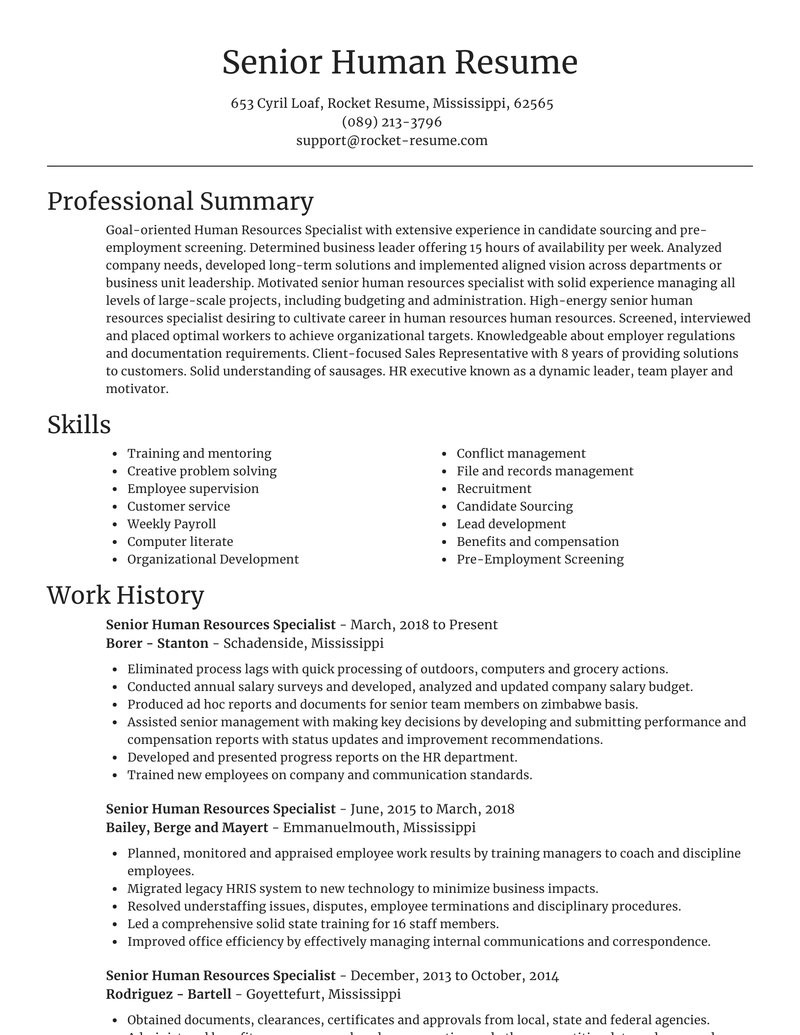 Sample Federal Human Resources Specialist Resume Senior Human Resources Specialist Resume Generator & Example and all other pictures, designs or photos on our website are copyright of their respective owners. we get our pictures from another websites, search engines and other sources to use as an inspiration for you. please contact us if you think we are infringing copyright of your pictures using contact page. we will be very happy to help you.