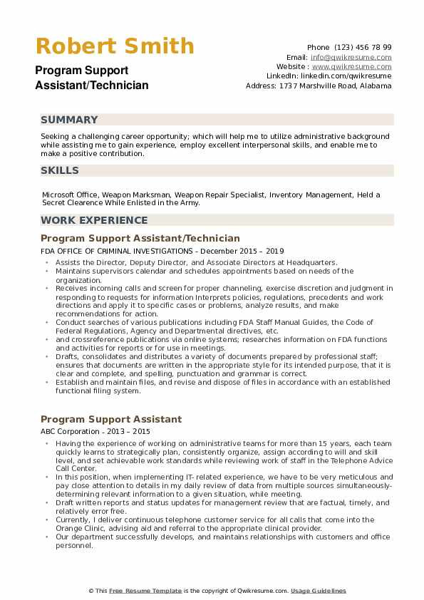 Sample Federal Resume Program Support assistant Program Support assistant Resume Samples and all other pictures, designs or photos on our website are copyright of their respective owners. we get our pictures from another websites, search engines and other sources to use as an inspiration for you. please contact us if you think we are infringing copyright of your pictures using contact page. we will be very happy to help you.