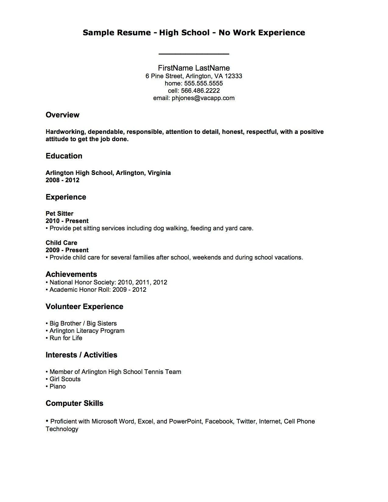 Back To Sample First Resume No Work Experience