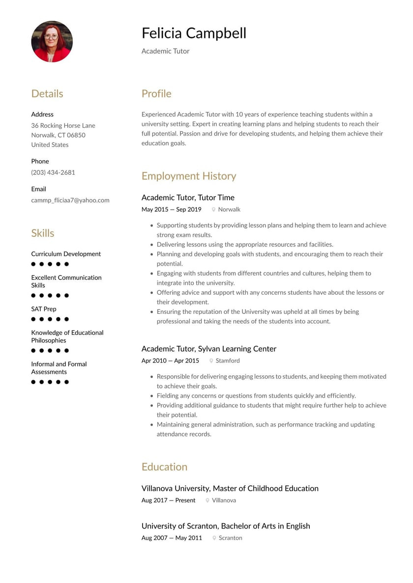 Sample High School Student Resume for Tutoring Job Tutor Resume Example & Writing Guide · Resume.io and all other pictures, designs or photos on our website are copyright of their respective owners. we get our pictures from another websites, search engines and other sources to use as an inspiration for you. please contact us if you think we are infringing copyright of your pictures using contact page. we will be very happy to help you.