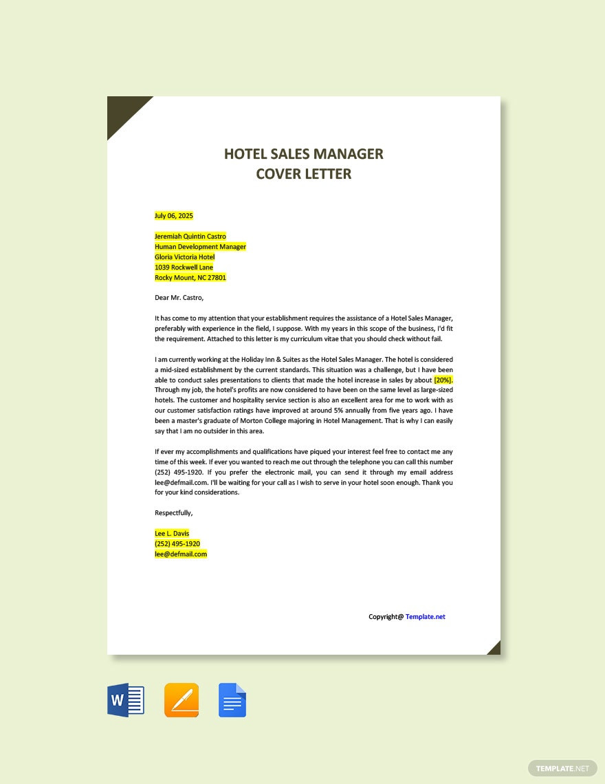 Sample Hotel Sales Manager Resume Cover Letter Free Free Hotel Sales Manager Cover Letter Template – Google … and all other pictures, designs or photos on our website are copyright of their respective owners. we get our pictures from another websites, search engines and other sources to use as an inspiration for you. please contact us if you think we are infringing copyright of your pictures using contact page. we will be very happy to help you.