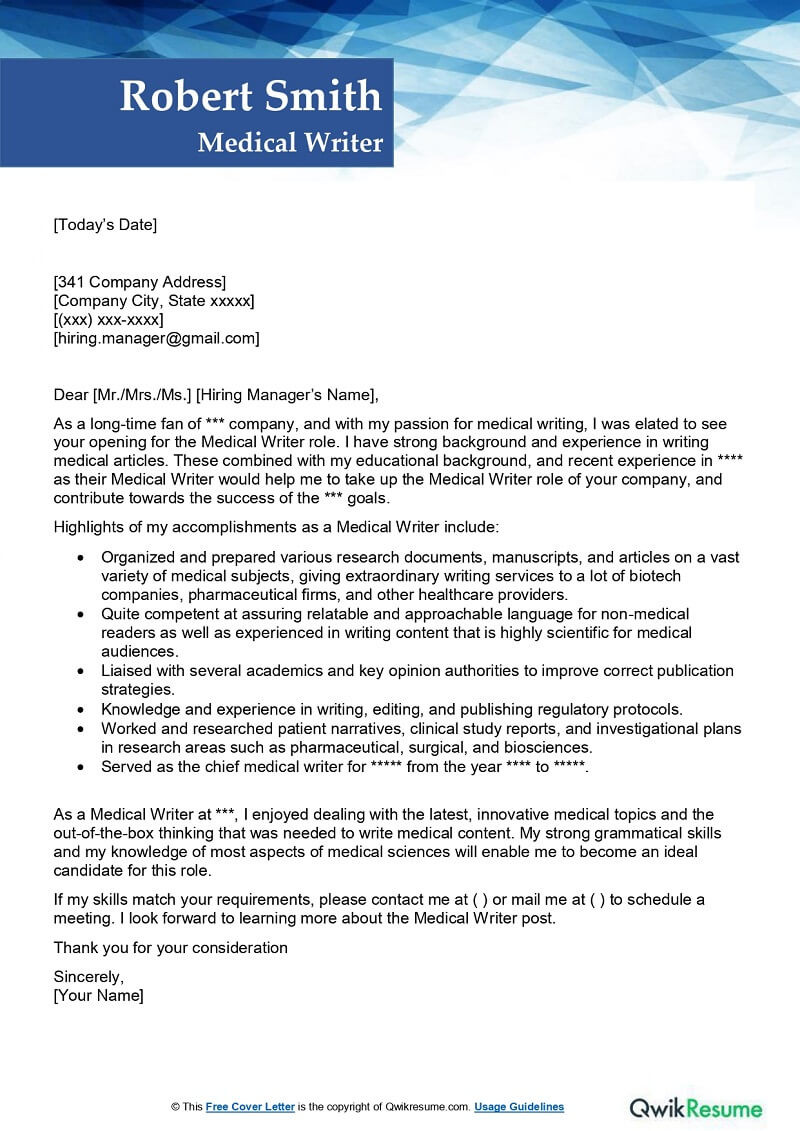 6 photos of the Sample Medical Writer Resume Cover Letter