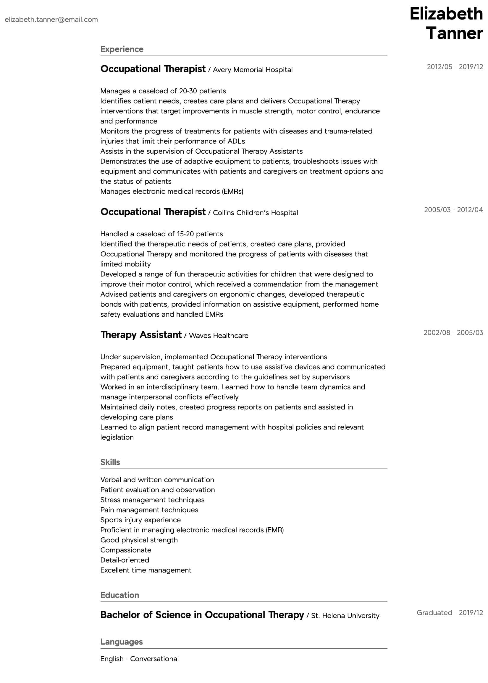 Sample Occupational therapy Resume New Grad Occupational therapy Resume Samples All Experience Levels … and all other pictures, designs or photos on our website are copyright of their respective owners. we get our pictures from another websites, search engines and other sources to use as an inspiration for you. please contact us if you think we are infringing copyright of your pictures using contact page. we will be very happy to help you.