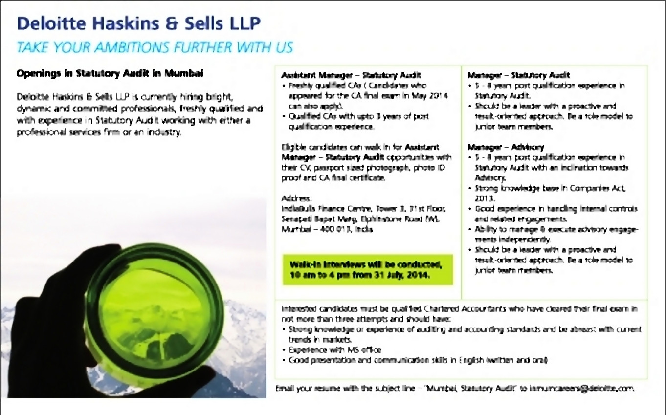 Sample Of A Deloitte Haskins and Sells Resume Manager – Advisory Job Vacancy at Deloitte Haskins & Sells Llp and all other pictures, designs or photos on our website are copyright of their respective owners. we get our pictures from another websites, search engines and other sources to use as an inspiration for you. please contact us if you think we are infringing copyright of your pictures using contact page. we will be very happy to help you.