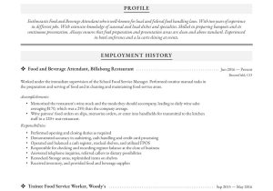 Back To Sample Of A Food Service Resume