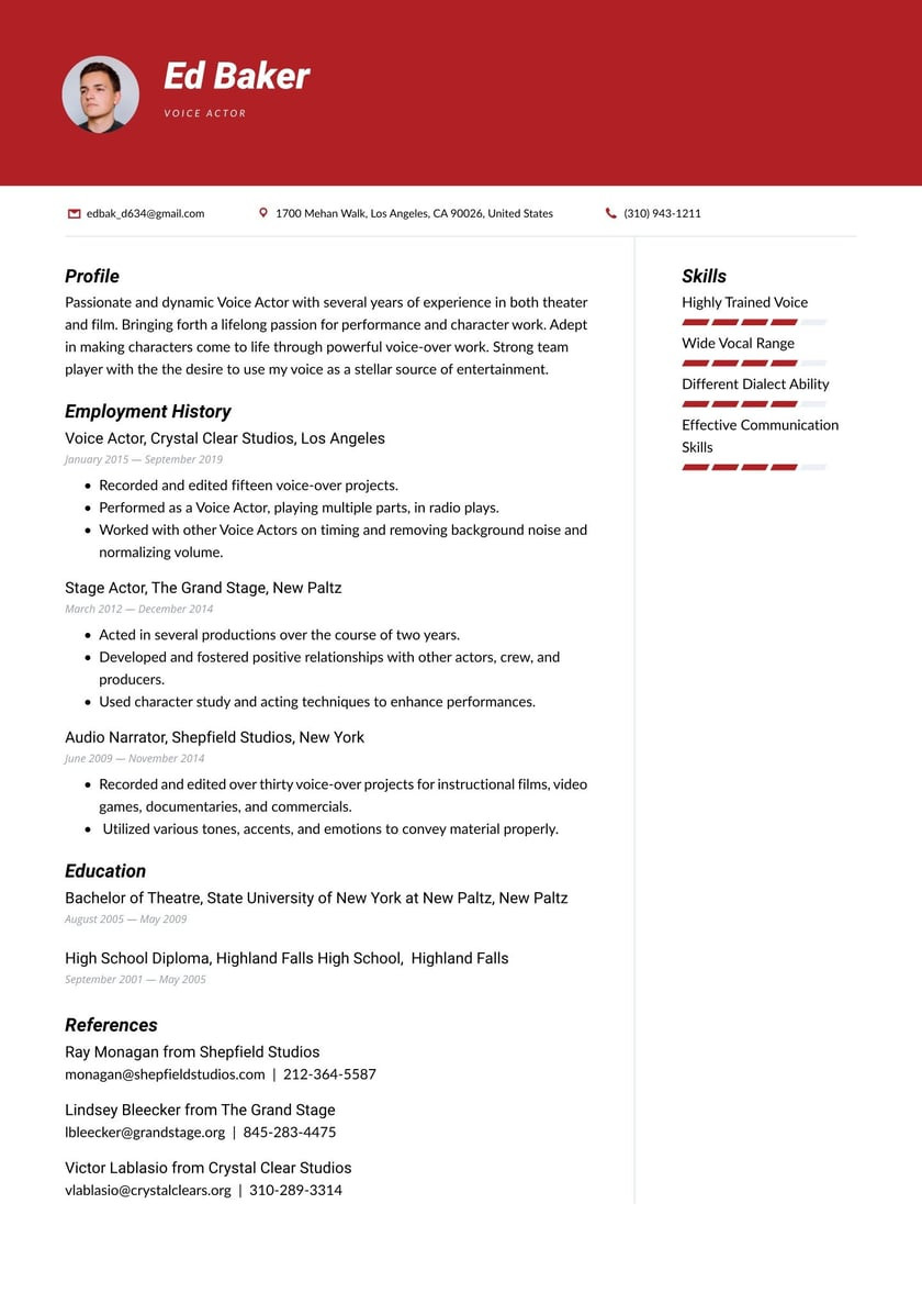 Warning: count(): Parameter must be an array or an object that implements Countable in /var/www/html/sangroupeducation.com/wp-content/themes/silegan-wordpress-theme/inc/themeson.class.php on line 625 Sample Of A Human Voiced Resume Voice Actor Resume Examples & Writing Tips 2022 (free Guide)