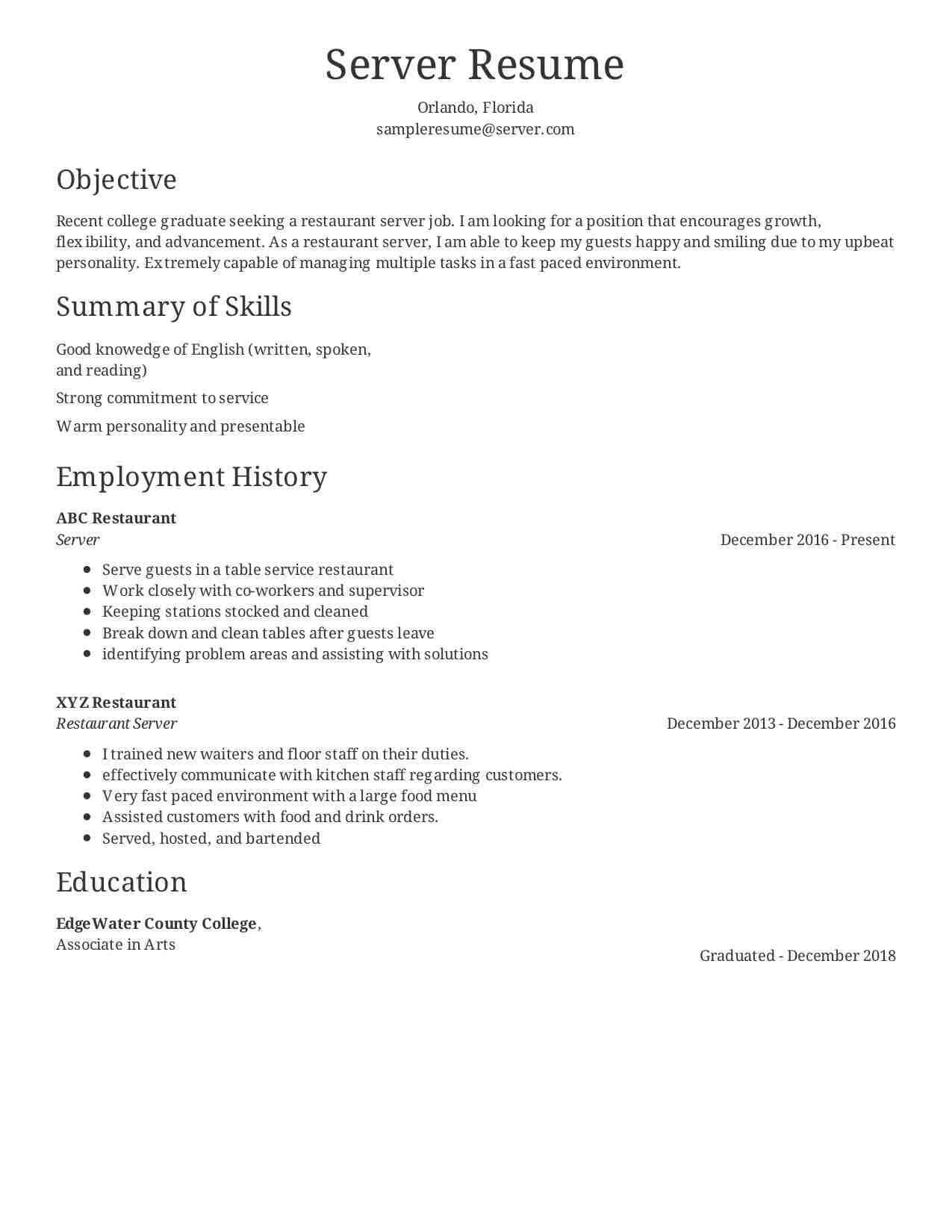 Sample Of Resume for Restaurant Server Real Restaurant Server Resume Critique Resume.com and all other pictures, designs or photos on our website are copyright of their respective owners. we get our pictures from another websites, search engines and other sources to use as an inspiration for you. please contact us if you think we are infringing copyright of your pictures using contact page. we will be very happy to help you.