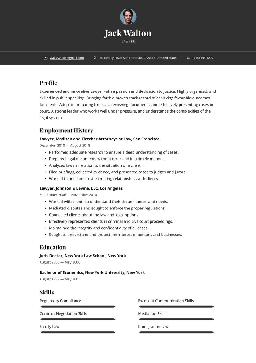 Sample Representative Matters for Lawyer Resume Lawyer Resume Examples & Writing Tips 2022 (free Guide) · Resume.io and all other pictures, designs or photos on our website are copyright of their respective owners. we get our pictures from another websites, search engines and other sources to use as an inspiration for you. please contact us if you think we are infringing copyright of your pictures using contact page. we will be very happy to help you.