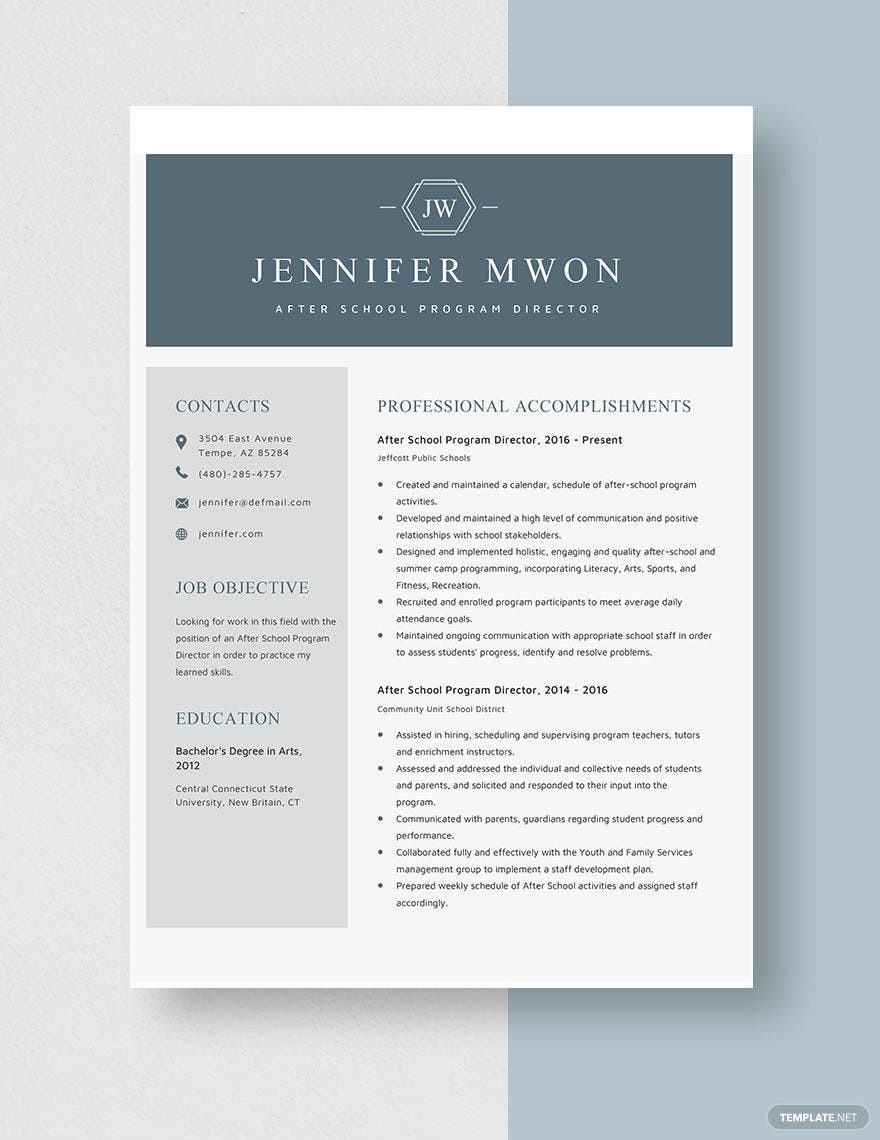 Sample Resume after School Program Coordinator after School Program Director Resume Template – Word, Apple Pages … and all other pictures, designs or photos on our website are copyright of their respective owners. we get our pictures from another websites, search engines and other sources to use as an inspiration for you. please contact us if you think we are infringing copyright of your pictures using contact page. we will be very happy to help you.