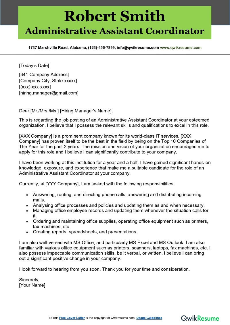 Sample Resume and Cover Letter for Administrative assistant Administrative assistant Coordinator Cover Letter Examples … and all other pictures, designs or photos on our website are copyright of their respective owners. we get our pictures from another websites, search engines and other sources to use as an inspiration for you. please contact us if you think we are infringing copyright of your pictures using contact page. we will be very happy to help you.