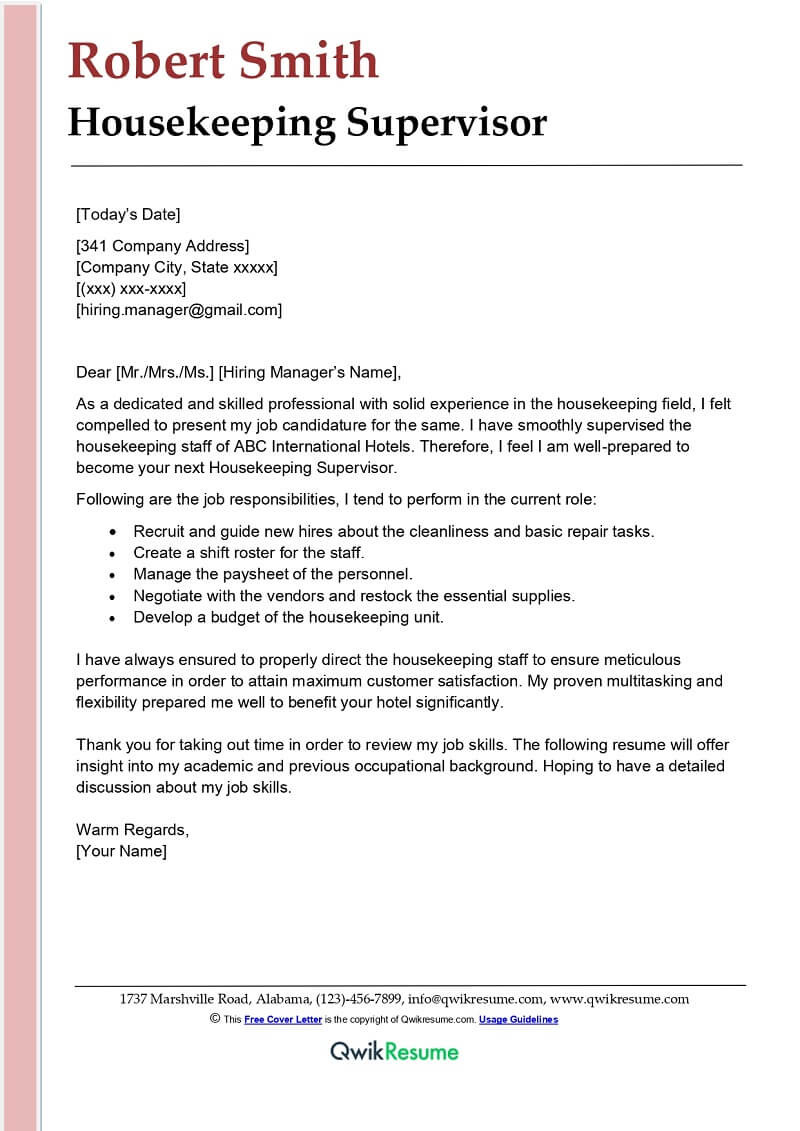 Sample Resume and Cover Letter for Supervisor Position Housekeeping Supervisor Cover Letter Examples – Qwikresume and all other pictures, designs or photos on our website are copyright of their respective owners. we get our pictures from another websites, search engines and other sources to use as an inspiration for you. please contact us if you think we are infringing copyright of your pictures using contact page. we will be very happy to help you.