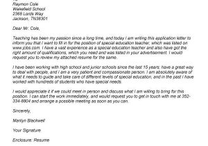 Back To Sample Resume Cover Letter for Special Education Teacher