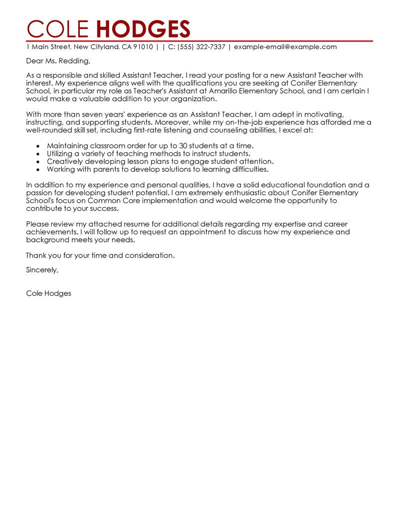 Sample Resume Cover Letter for Teacher assistant Leading Professional assistant Teacher Cover Letter and all other pictures, designs or photos on our website are copyright of their respective owners. we get our pictures from another websites, search engines and other sources to use as an inspiration for you. please contact us if you think we are infringing copyright of your pictures using contact page. we will be very happy to help you.