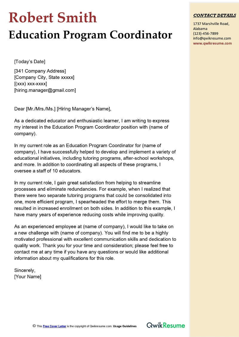 Sample Resume Education Program Coordinator Child Care Education Program Coordinator Cover Letter Examples – Qwikresume and all other pictures, designs or photos on our website are copyright of their respective owners. we get our pictures from another websites, search engines and other sources to use as an inspiration for you. please contact us if you think we are infringing copyright of your pictures using contact page. we will be very happy to help you.