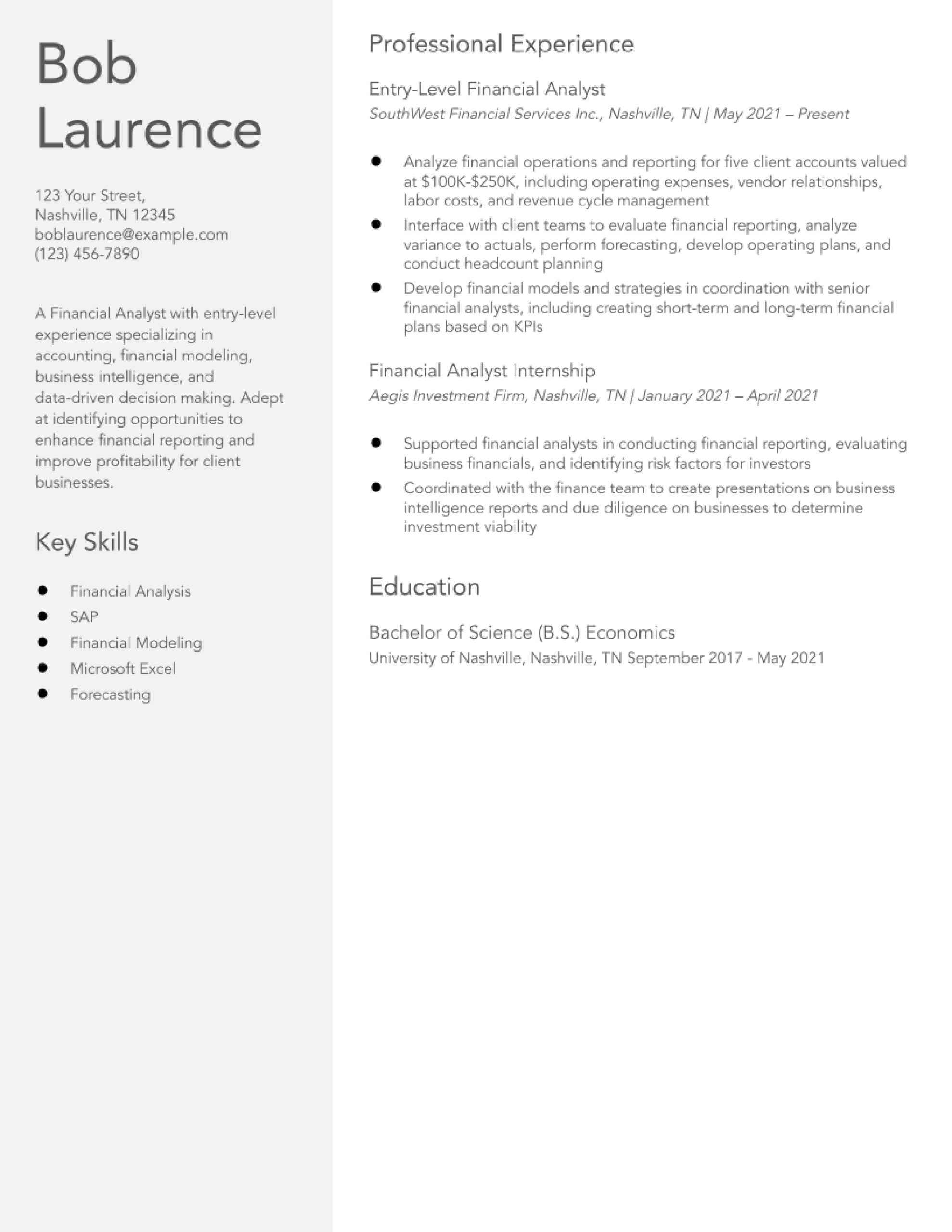 Sample Resume Entry Level Financial Analyst Entry-level Financial Analyst Resume Examples In 2022 …