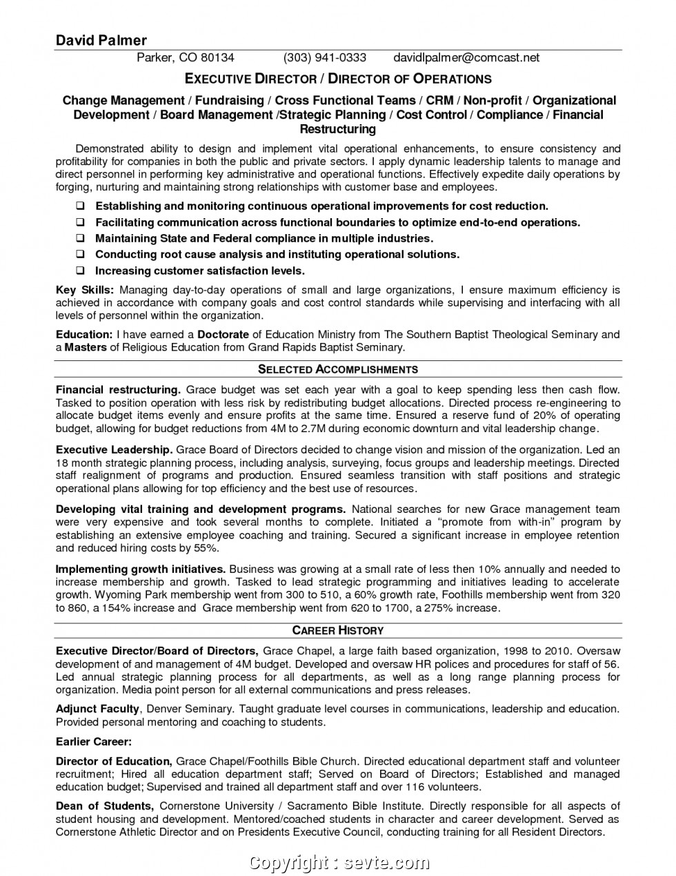 Sample Resume Executive Director Non Profit organization New Non Profit Operations Manager Resume Sample Executive and all other pictures, designs or photos on our website are copyright of their respective owners. we get our pictures from another websites, search engines and other sources to use as an inspiration for you. please contact us if you think we are infringing copyright of your pictures using contact page. we will be very happy to help you.