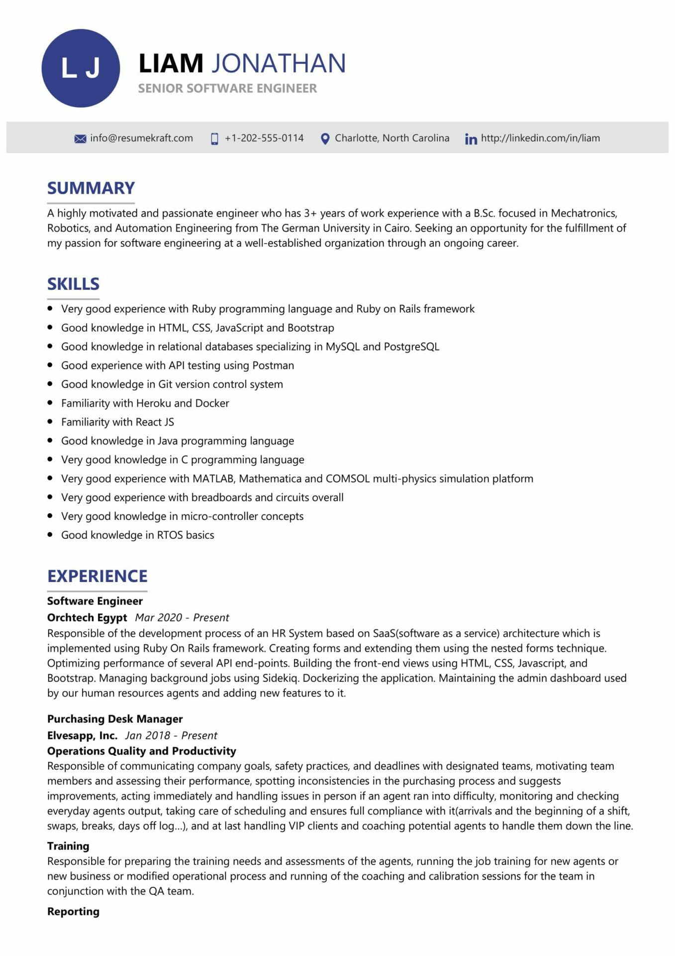 Back To Sample Resume Experienced software Engineer 2023