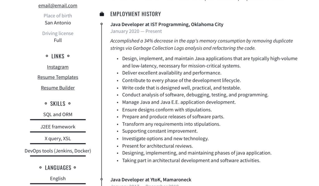 https://www.sangroupeducation.com/sample-resume-experienced-software-engineer-java/sample-resume-experienced-software-engineer-java-java-developer-resume-writing-guide-20-templates/