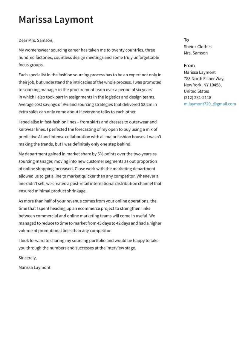 6 photos of the Sample Resume Fashion Marketing Cover Letter