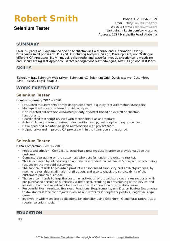 Sample Resume for 3 Years Experience In Selenium Testing Selenium Tester Resume Samples is related to Resume Samples. if you looking for Sample Resume for 3 Years Experience In Selenium Testing Selenium Tester Resume Samples and you feel this is useful, you must share this image to your friends. we also hope this image of Sample Resume for 3 Years Experience In Selenium Testing Selenium Tester Resume Samples can be useful for you. we will always give new source of image for you
