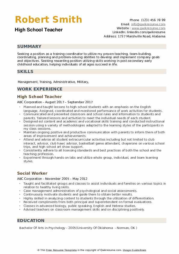 Sample Resume for A High School Teacher High School Teacher Resume Samples and all other pictures, designs or photos on our website are copyright of their respective owners. we get our pictures from another websites, search engines and other sources to use as an inspiration for you. please contact us if you think we are infringing copyright of your pictures using contact page. we will be very happy to help you.
