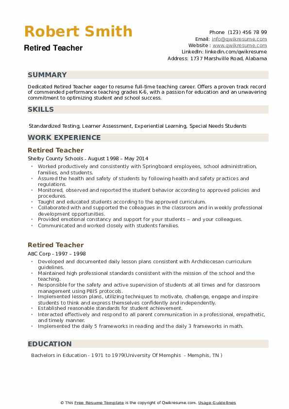 Sample Resume for A Retired Person Retired Teacher Resume and all other pictures, designs or photos on our website are copyright of their respective owners. we get our pictures from another websites, search engines and other sources to use as an inspiration for you. please contact us if you think we are infringing copyright of your pictures using contact page. we will be very happy to help you.