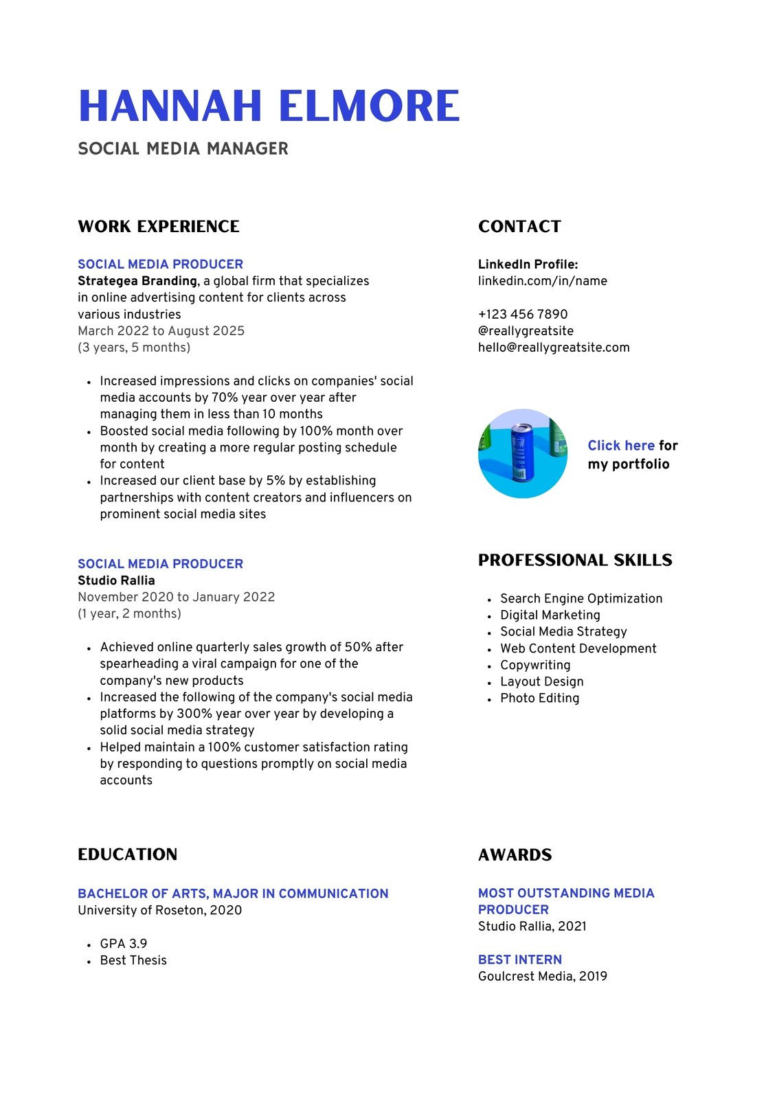 Sample Resume for A social Media Manager Blue Black Bold Modern social Media Manager Resume – Templates by … and all other pictures, designs or photos on our website are copyright of their respective owners. we get our pictures from another websites, search engines and other sources to use as an inspiration for you. please contact us if you think we are infringing copyright of your pictures using contact page. we will be very happy to help you.
