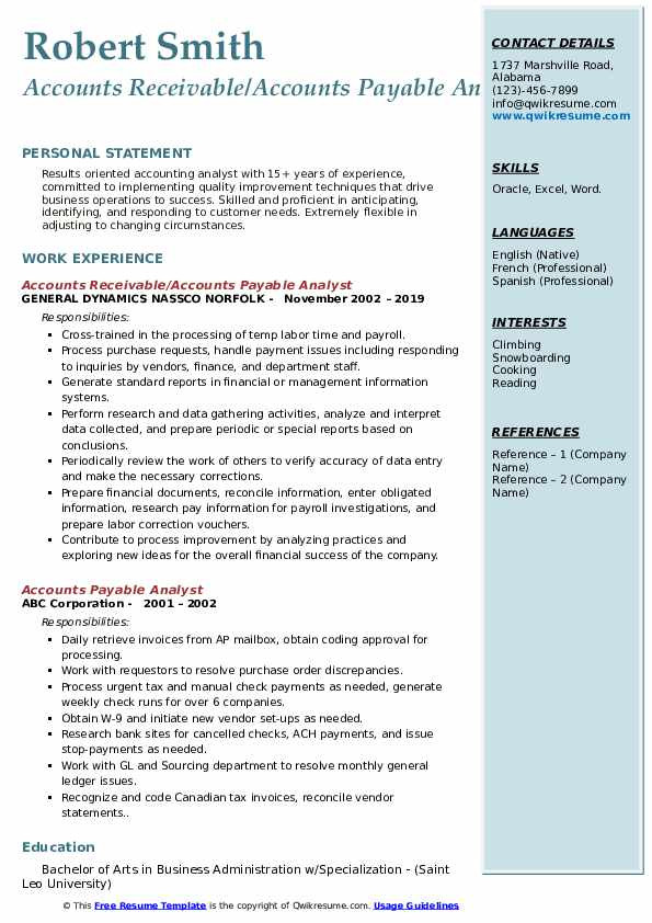 Tags: sample resume accounts receivable analyst, sample resume for accounts payable analyst