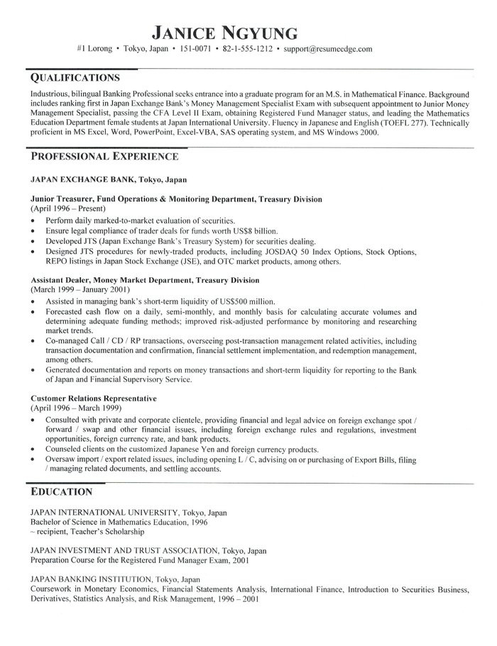Back To Sample Resume for Admission to Graduate School