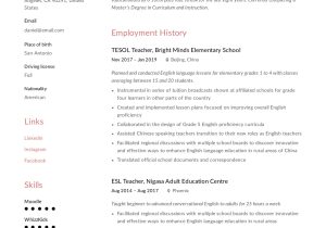 Sample Resume for Adult Esl Students Esl Teacher Resumeâsamples for Esl Teaching Jobs and all other pictures, designs or photos on our website are copyright of their respective owners. we get our pictures from another websites, search engines and other sources to use as an inspiration for you. please contact us if you think we are infringing copyright of your pictures using contact page. we will be very happy to help you.