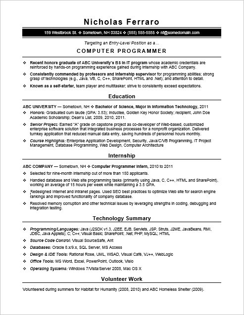 Sample Resume for An Entry Level Computer Programmer Sample Resume for An Entry Level Puter Programmer and all other pictures, designs or photos on our website are copyright of their respective owners. we get our pictures from another websites, search engines and other sources to use as an inspiration for you. please contact us if you think we are infringing copyright of your pictures using contact page. we will be very happy to help you.