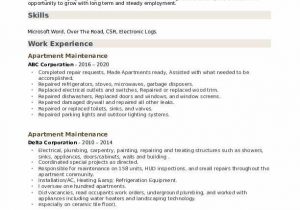 Sample Resume for Apartment Maintenance Worker Apartment Maintenance Resume Samples and all other pictures, designs or photos on our website are copyright of their respective owners. we get our pictures from another websites, search engines and other sources to use as an inspiration for you. please contact us if you think we are infringing copyright of your pictures using contact page. we will be very happy to help you.