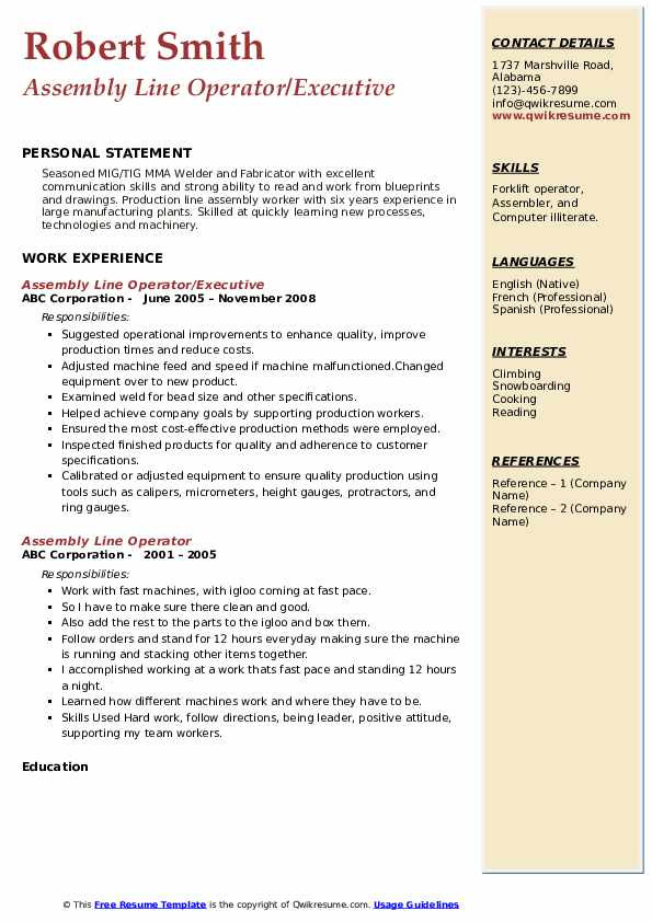 Back To Sample Resume for assembly Line Operator