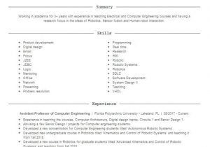 Back To Sample Resume for assistant Professor In Mechanical Engineering