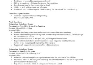 Back To Sample Resume for Auto Body Painter